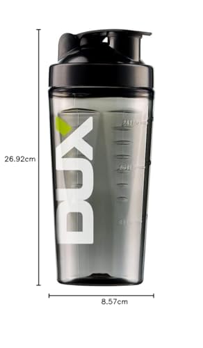 Possui capacidade para 800ml, com marcadores laterais para medir a quantidade exata de água no preparo do seu suplemento, livre de bpa, substância nociva à saúde, disponível na cor fumê