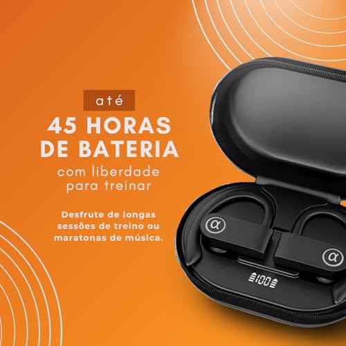 ⚡ Estojo com carga extra: Até 45 horas de uso total com recarga portátil.