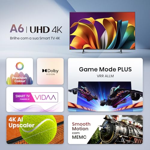 Hisense Smart TV UHD 4K DLED 70″ Polegadas 70A6N com HDR10+ Dolby Vision Game Mode Controle por Voz Alexa Built-In AirPlay